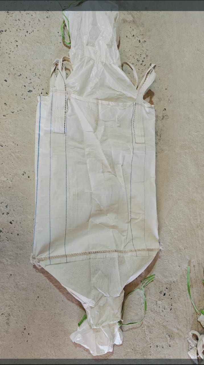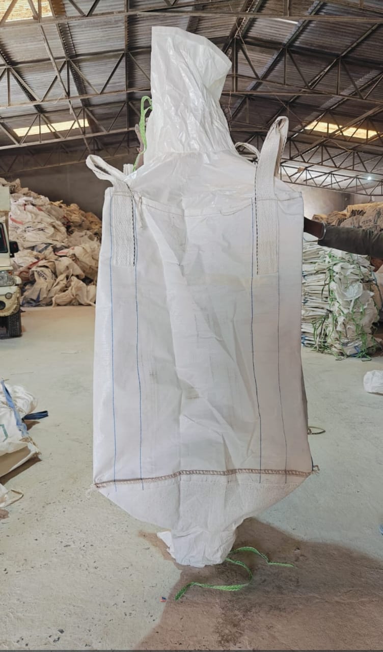 Jumbo Bag made of Cross Corner PP woven, white colour fabric, UV stabilized, Double Chain Stitch.